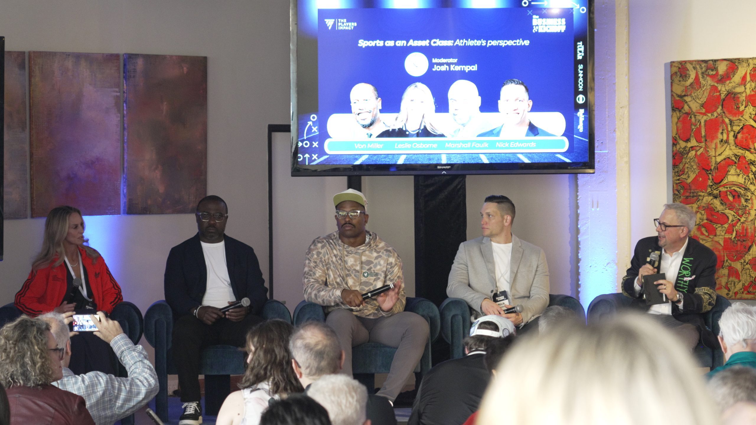 The discussion explored athlete-led investing, brand alignment, and the importance of thinking strategically about opportunities during and after a playing career. A consistent theme emerged: athletes who understand ownership early are better positioned to build sustainable success beyond the game. The panel was moderated by Josh Kampel of Worth Media and included athlete panelists Leslie Osborne (Pro Soccer), Nick Edwards (MMA), Marshall Faulk (NFL) and Von Miller (NFL).