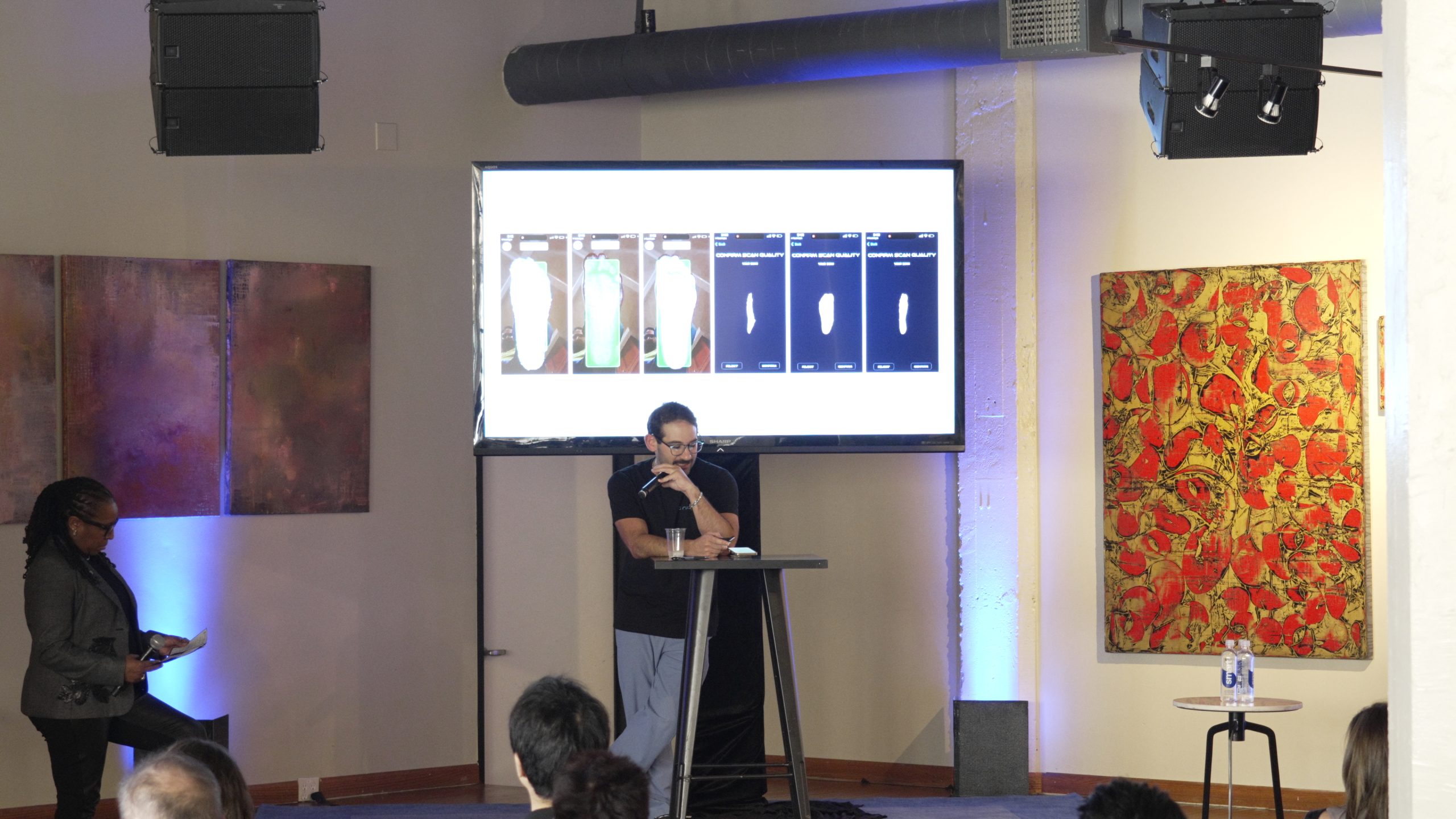Pitching to a panel of investors Sean Jacobsohn of Norwest Ventures, Victoria Treyger of Felicis and Jen Welter (First Female NFL Coach) of Grifiron Girls.